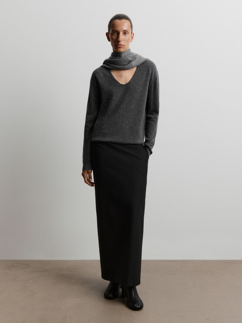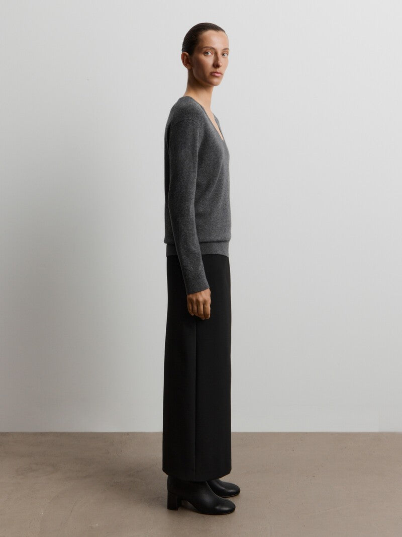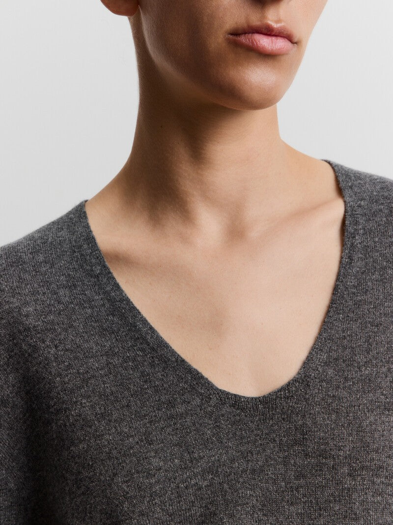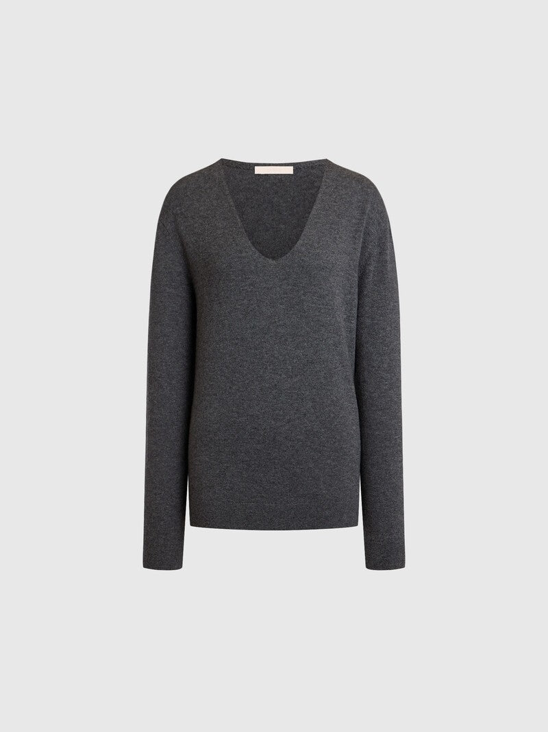 Perfect for layered looks, this cosy jumper is knitted from fine merino wool and cashmere. Designed with a relaxed fit and a soft U-neckline, it boasts lightweight, single-thread knit that envelopes you with warmth and drapes in soft folds.