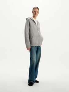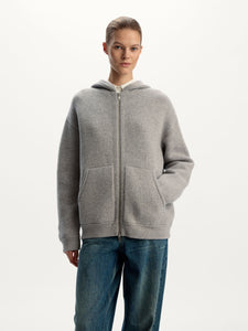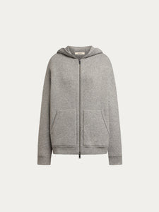 An alternative to cotton and fleece sweats, this hoodie is crafted from merino wool and cashmere, offering a warm, roomy layer that can be worn solo or under coats and jackets. Knitted from four strands, it keeps a sturdy silhouette and fastens with a two-way zip.